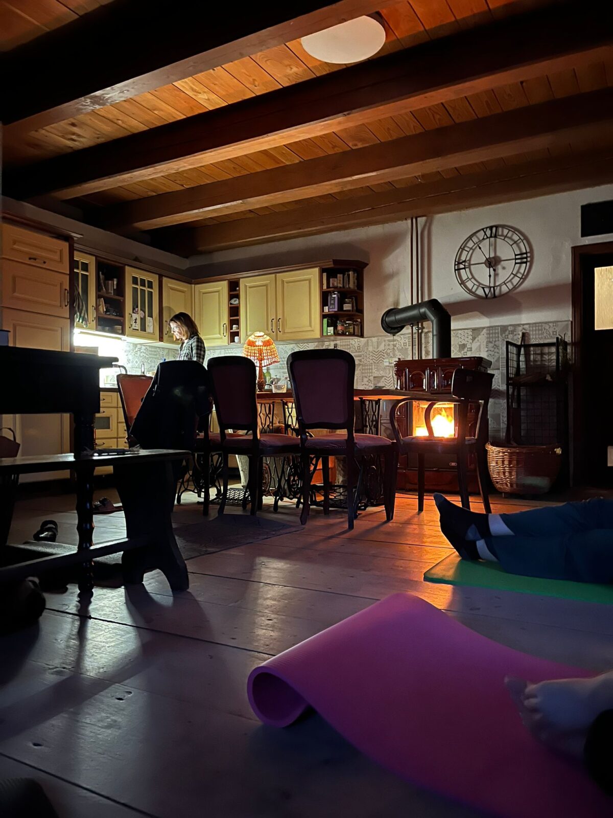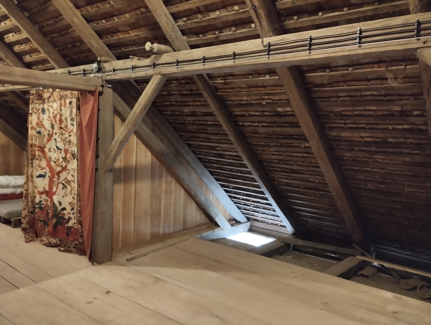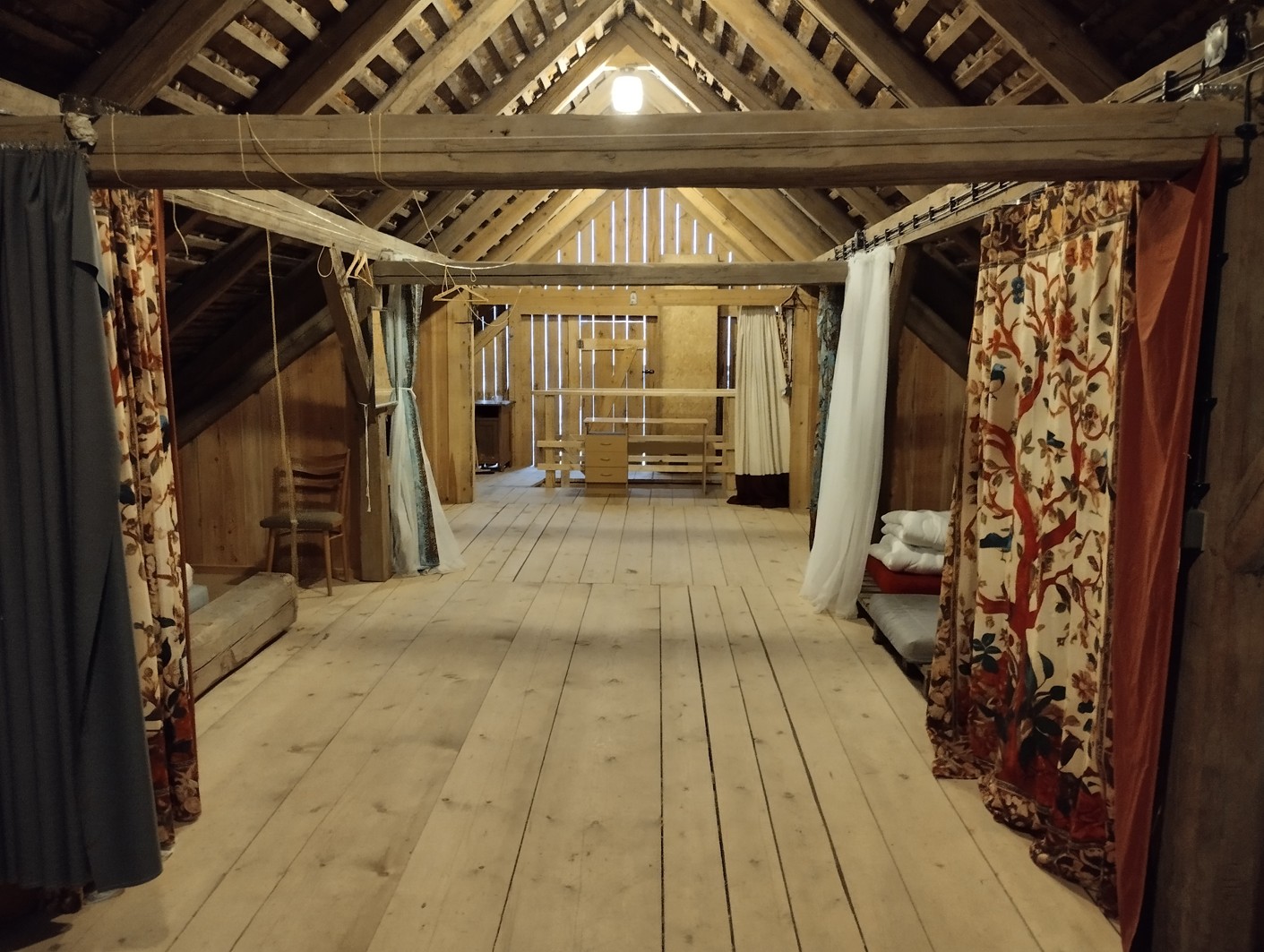 Letní půda funguje od roku 2023. Vejde se na ni kolem deseti lidí. Jsou zde dvě postele a několik pohodlných matrací. V rohu je pracovní kout u stolu s výhledem. Na půdě je nová elektrika a zásuvky. Na jaře a na podzim zde také cvičíme jógu.