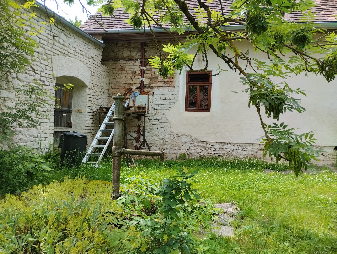 Proky mě upozornil při lekci jógy, že mi teče do sednice. To není prdel. Jdu na půdu po ukončení lekce a vidím, že na východní straně je dost tašek poškozených (ty staré bobrovky praskají každou chvíli, musí se to opravovat tu a tam každý rok) a prostě tam teče. Musela jsem tam dát hrnec, protéká to stropem až. Nedá se k tomu moc dostat. Jdu ještě do stodoly zkoumat, kudy teče tam a naštěstí je to opravdu tak, jak říkal Zbyněk, stéká to po těch prknech, protože štít je stále odhalený. Pak další den se ukázalo, že ten liják byl opravdu extra, ve Slavonicích byly záplavy. Tady bylo vidět, že na dvoře skoro hned stála voda, to skoro nevidím. Nestačila se vsakovat. A prověřilo to prostě střechu, musím to opravit, to na zimu takhle zůstat nemůže.