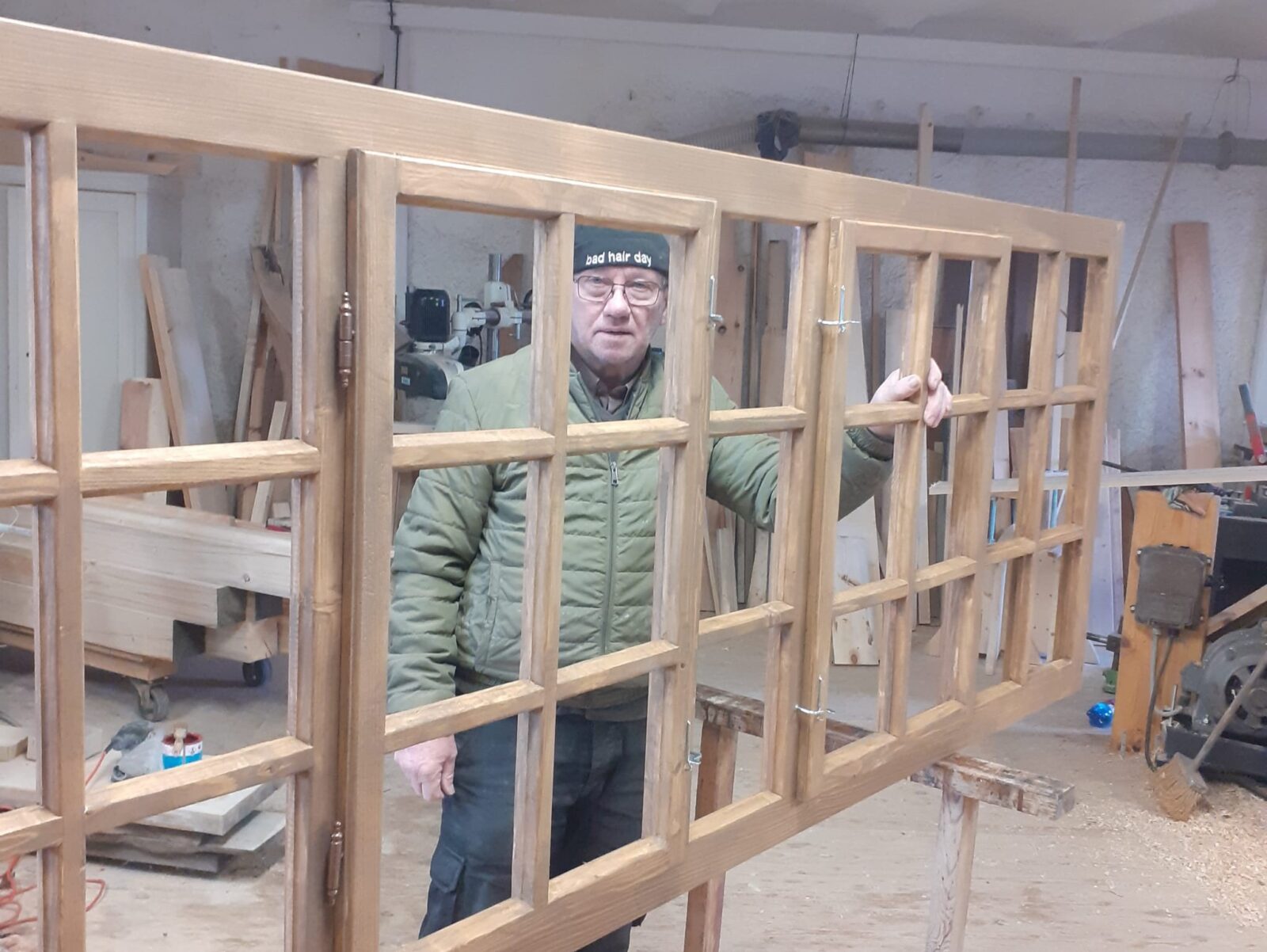 Přijel Zbyněk s Honzou Vraspírem a přivezli to velké okno do horní části štítu stodoly. Museli to pronést vraty, vzpříčili se ve vrátkách. Nejdřív tam něco štelují, já si balím zásilky do eshopu. Honza ještě dokončoval natírání barvou, aby byl natřený i ten kyt. A Zbyněk mi přišel do sednice dodělat tu poličku na obrázky. Už zbýval jen kousek. Mám z toho fakt radost, protože to hodně zrychlý celý proces „svatého byznysu“. Každej obrázek má teď své místo, postupně si je tam naskládám. Dáváme si všichni kafe, hovoříme trochu, Honza si vybral obrázek sv. Michaela, chtěla jsem mu nějaký dát. A volá nám taky Jeník, tak jsme vyslechli jeho zvěsti.